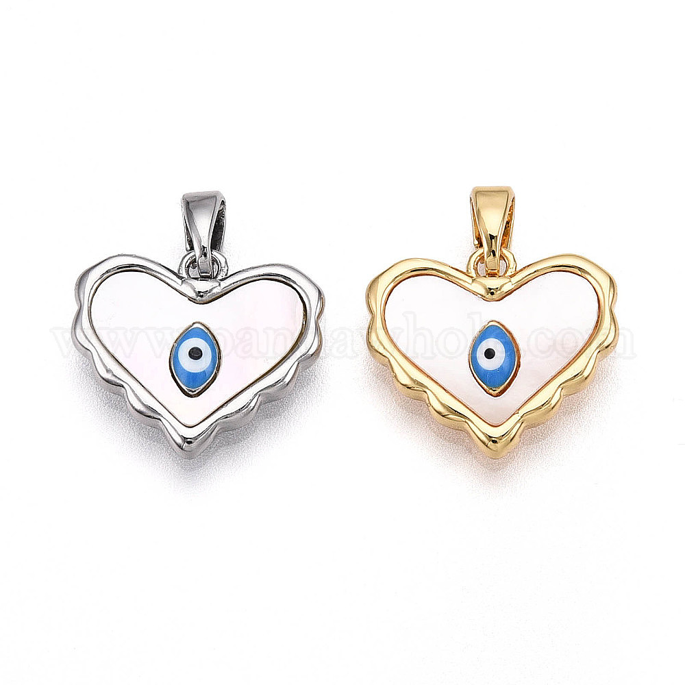 Подвески в форме сердца из натуральной ракушки из латуни, очаровашка синяя эмаль сглаза