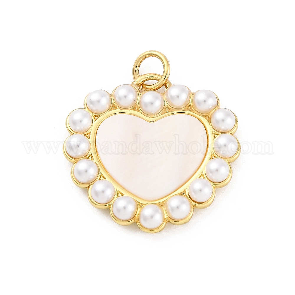 • Настоящее золото 18K Подвески из латуни из натуральных ракушек, подвески в форме сердца с искусственным жемчугом из АБС-пластика и соединительными кольцами, белые, стойки покрытие, долговечный, без кадмия и без свинца, реальный 18 k позолоченный, 21x21.5x4 мм, отверстие : 3 мм