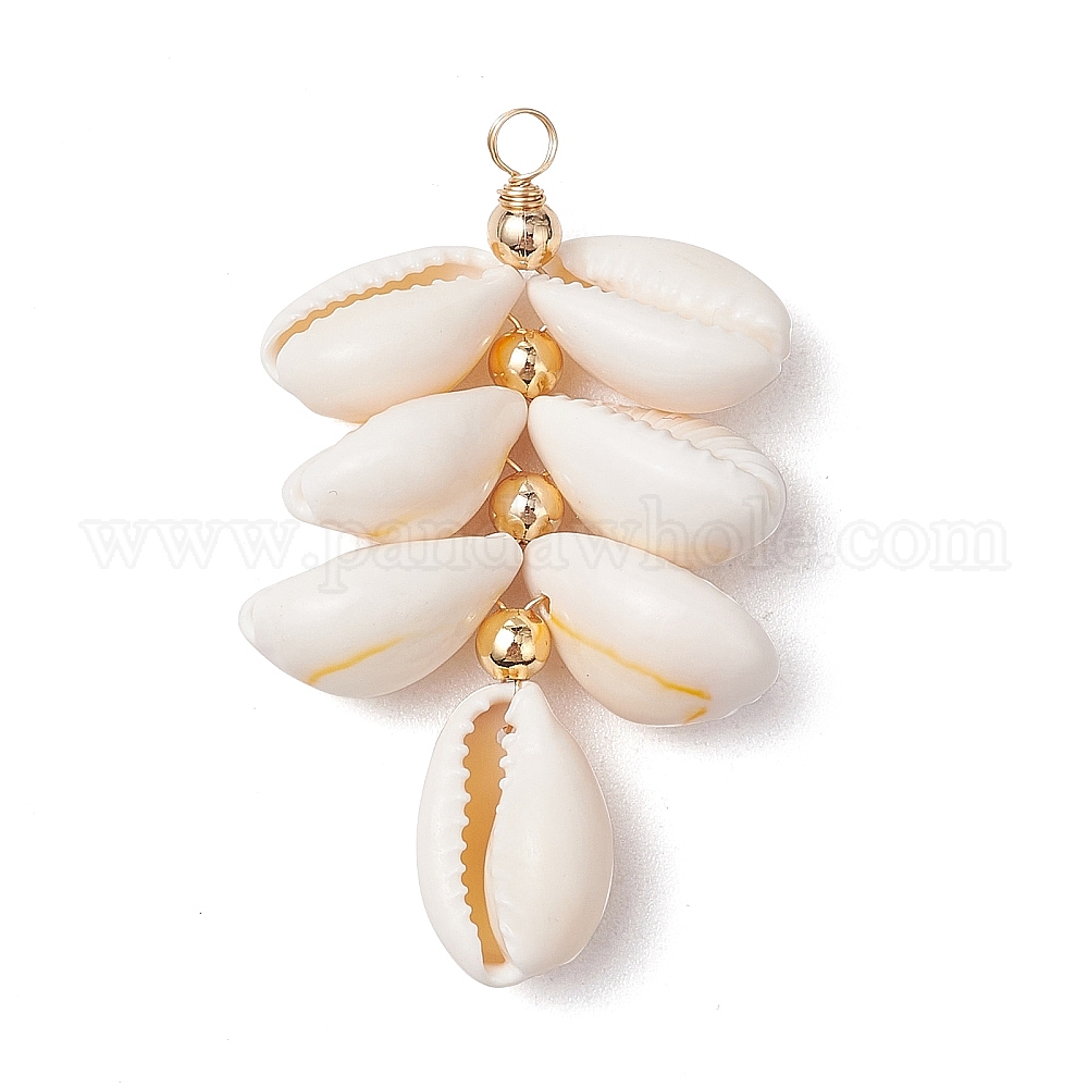 Подвески-кластеры из натуральных ракушек каури, меняющие цвет, с латунными бусинами и петлями из медной проволоки