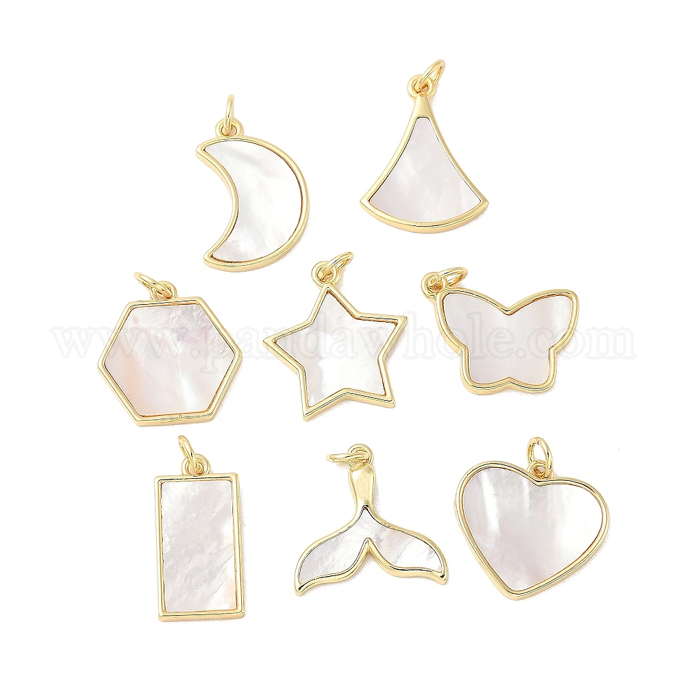 Подвески из латуни с натуральными белыми ракушками, реальный 18 k позолоченный, с прыжковых колец, долговечный, без свинца и без кадмия, стойки покрытие
