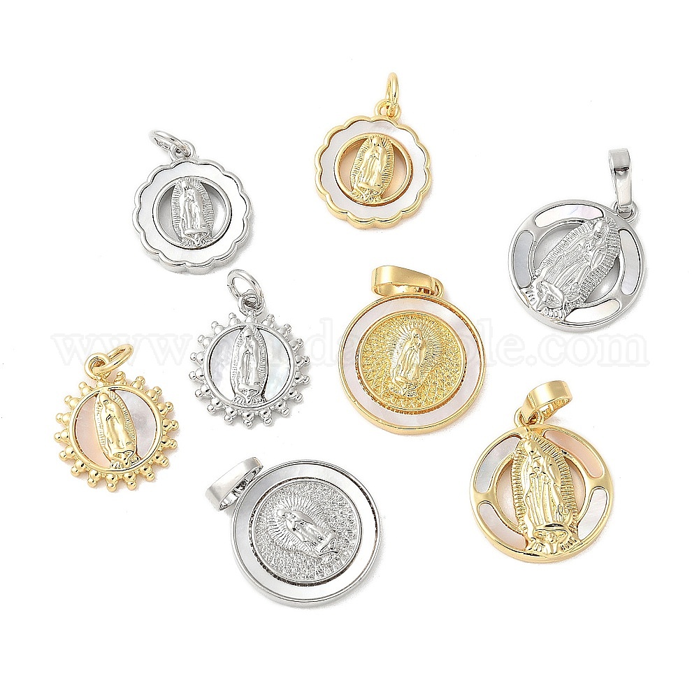 Подвески из латуни с натуральными белыми ракушками, религия дева мария прелести, долговечный, без свинца и без кадмия, стойки покрытие