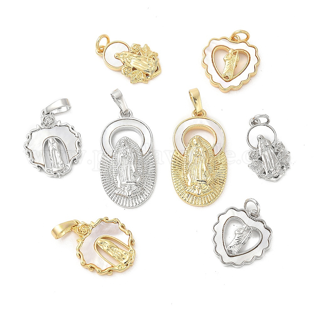 Латунные подвески из натуральной белой ракушки в стиле религии, долговечный, без свинца и без кадмия, стойки покрытие
