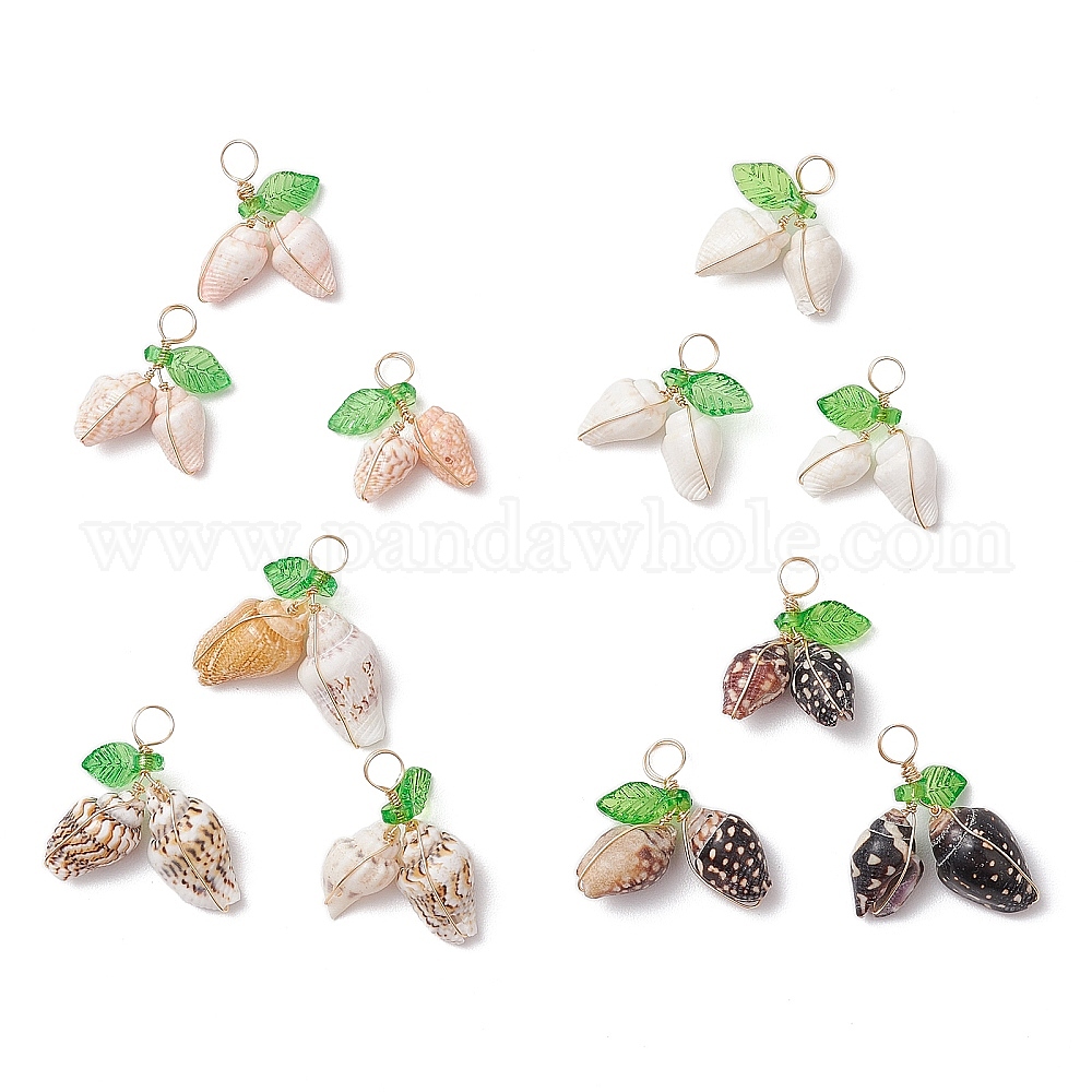 Подвески из натуральной морской ракушки, обмотанные медной проволокой, с акриловым листом цвета зеленого лайма, золотые