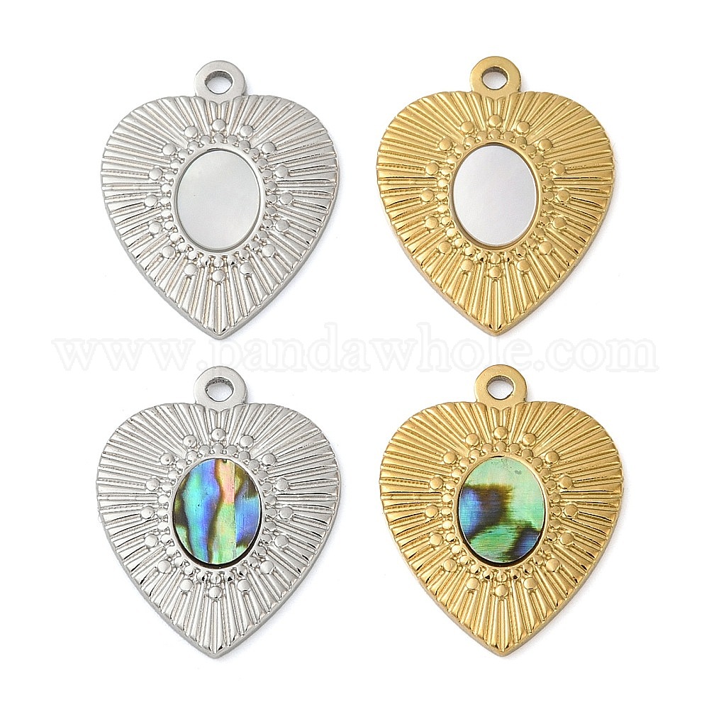 304 подвески из натуральной ракушки из нержавеющей стали, сердце прелести, ионное покрытие (ip)
