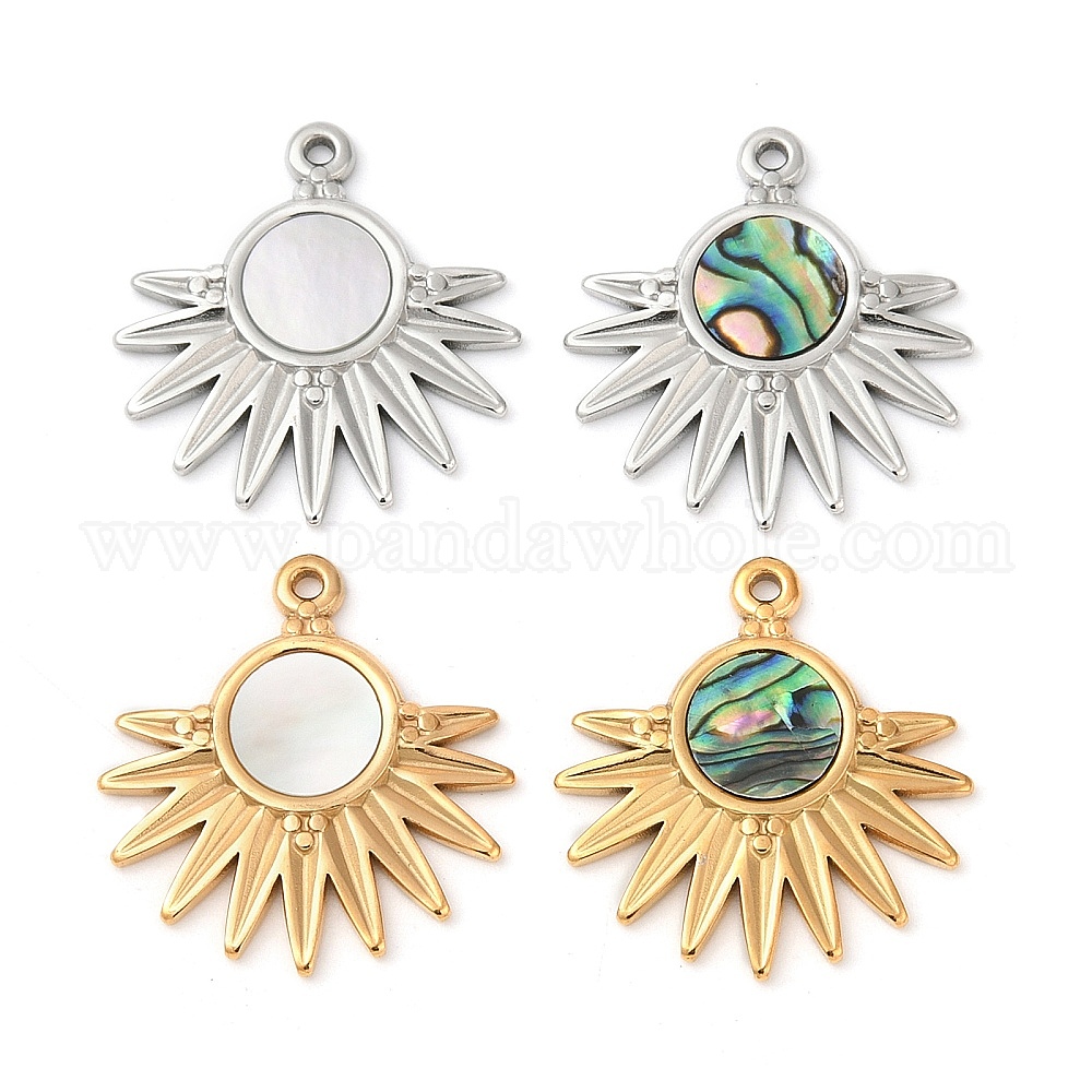 304 подвески из натуральной ракушки из нержавеющей стали, солнечные чары, ионное покрытие (ip)