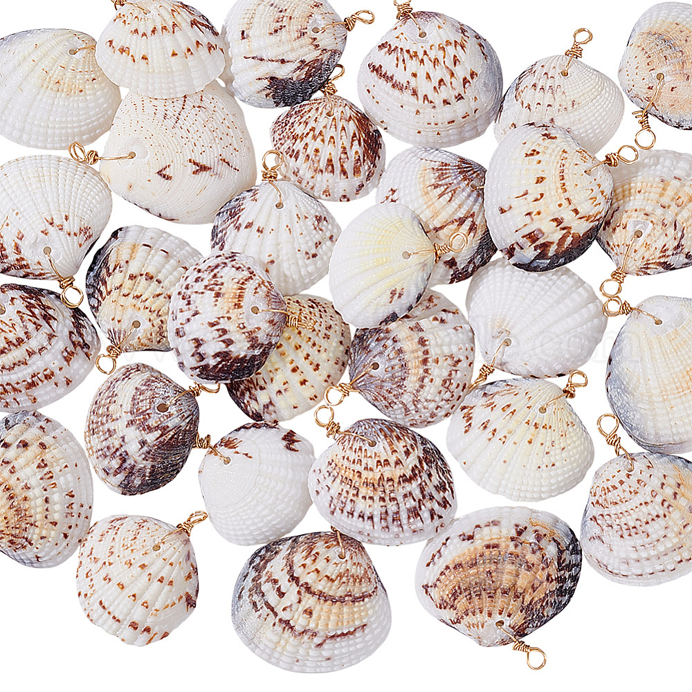 • Золотой 30 шт. Подвески из натуральных ракушек, с медной проволокой, подвески в форме ракушек, золотые, 28~37 мм