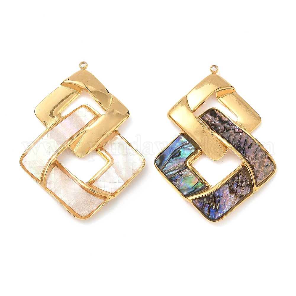 304 подвески из натуральной ракушки из нержавеющей стали, подвески в виде двойных ромбов, реальный 18 k позолоченный, вакуумное покрытие pvd