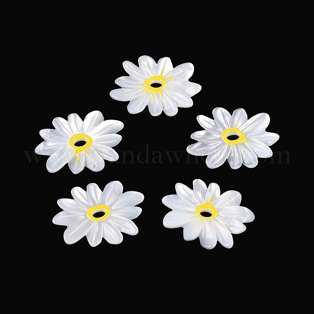 Натуральный белый оболочки подвески, подвески-цветы из желтой эмали