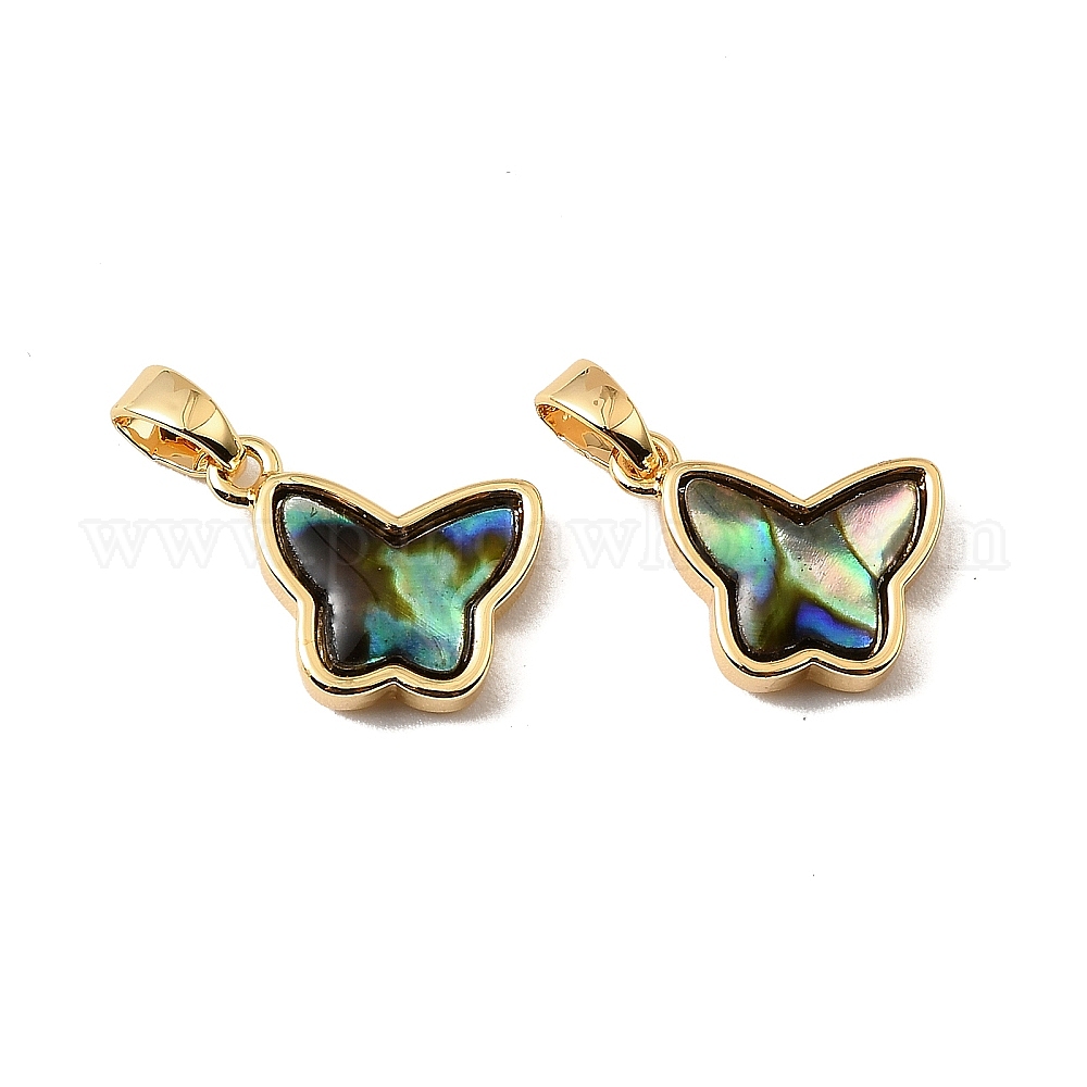 • Настоящее золото 18K Подвески-бабочки из натуральной ракушки пауа, с латунной, реальный 18 k позолоченный, 11x13.5x3.5 мм, отверстие : 5x2 мм
