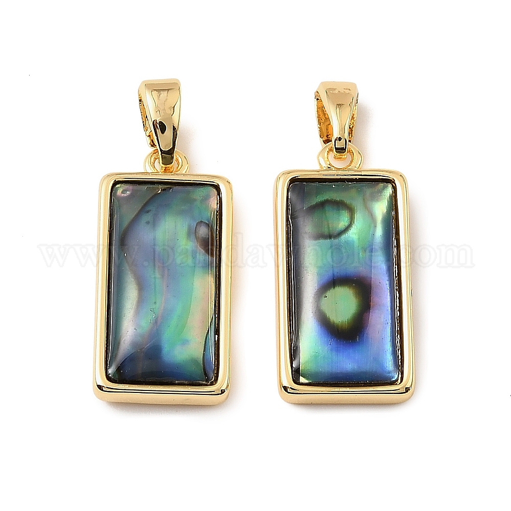 Подвески-прямоугольники из натуральной ракушки пауа, с латунной