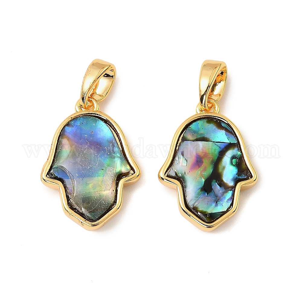 Подвески на руку из натуральной ракушки пауа с символом хамсы, с латунной (036K6Y)