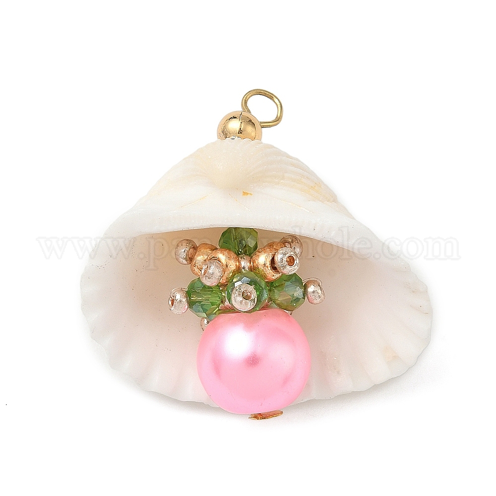 Подвески из натуральных ракушек и круглого стекла, подвески в форме ракушки с железными петлями, золотые