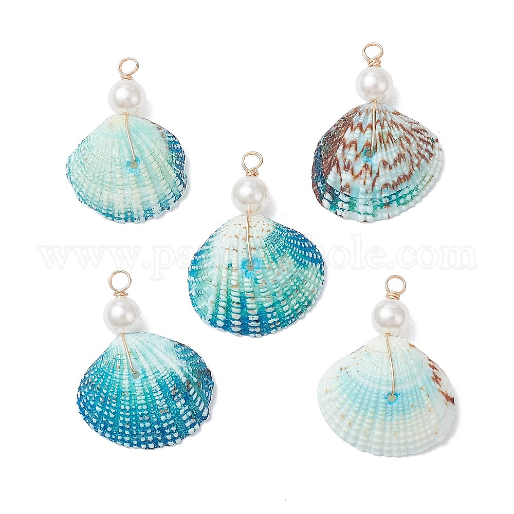 Подвески из окрашенных натуральных ракушек и имитации круглого белого жемчуга, подвески в форме ракушек, глубокое синее небо