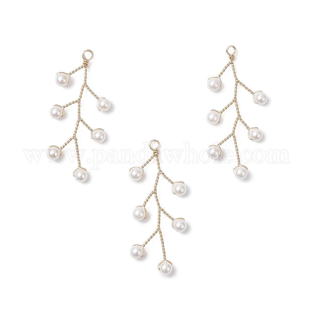 Подвески из медной проволоки с ракушками и жемчугом, лист прелести, белые