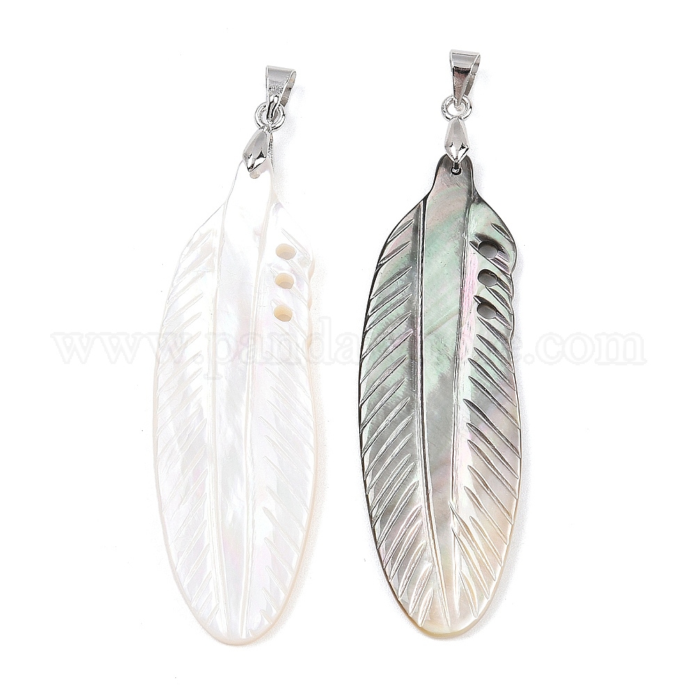 Подвески из натуральной ракушки, подвески из перьев с латунными дужками, платина, стойки покрытие