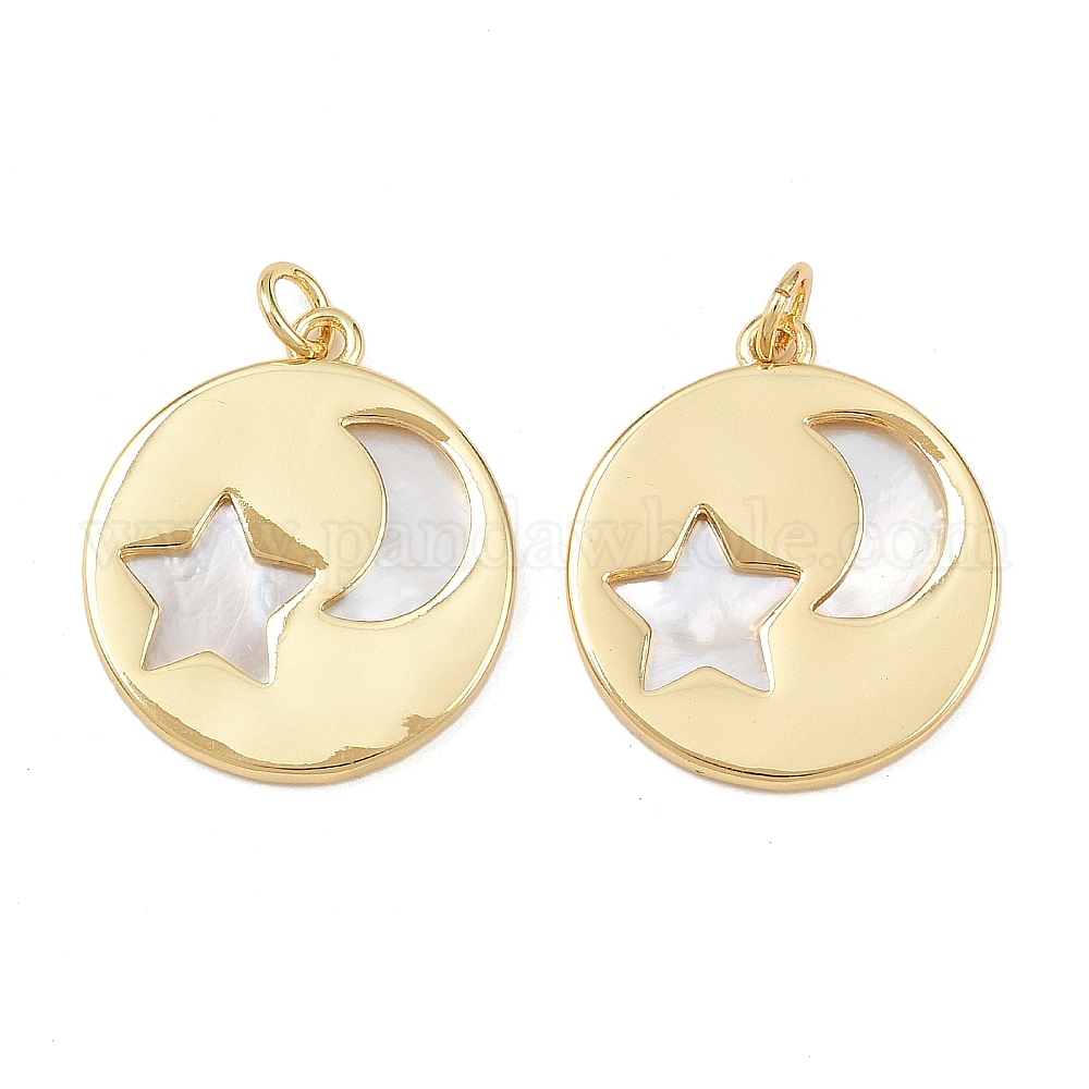Природные подвески оболочки, латунные полые подвески в виде солнца и луны, плоские круглые, с соединительными кольцами, без свинца и без кадмия, долговечный, стойки покрытие, цвет морской раковины