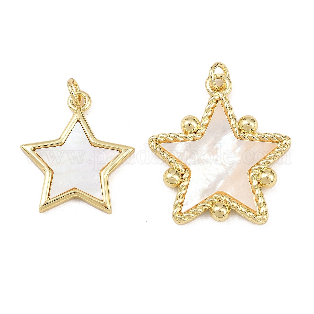 Подвески-звезды из натуральных ракушек, с латунными оправами и соединительными кольцами, без свинца и без кадмия, долговечный, стойки покрытие, цвет морской раковины