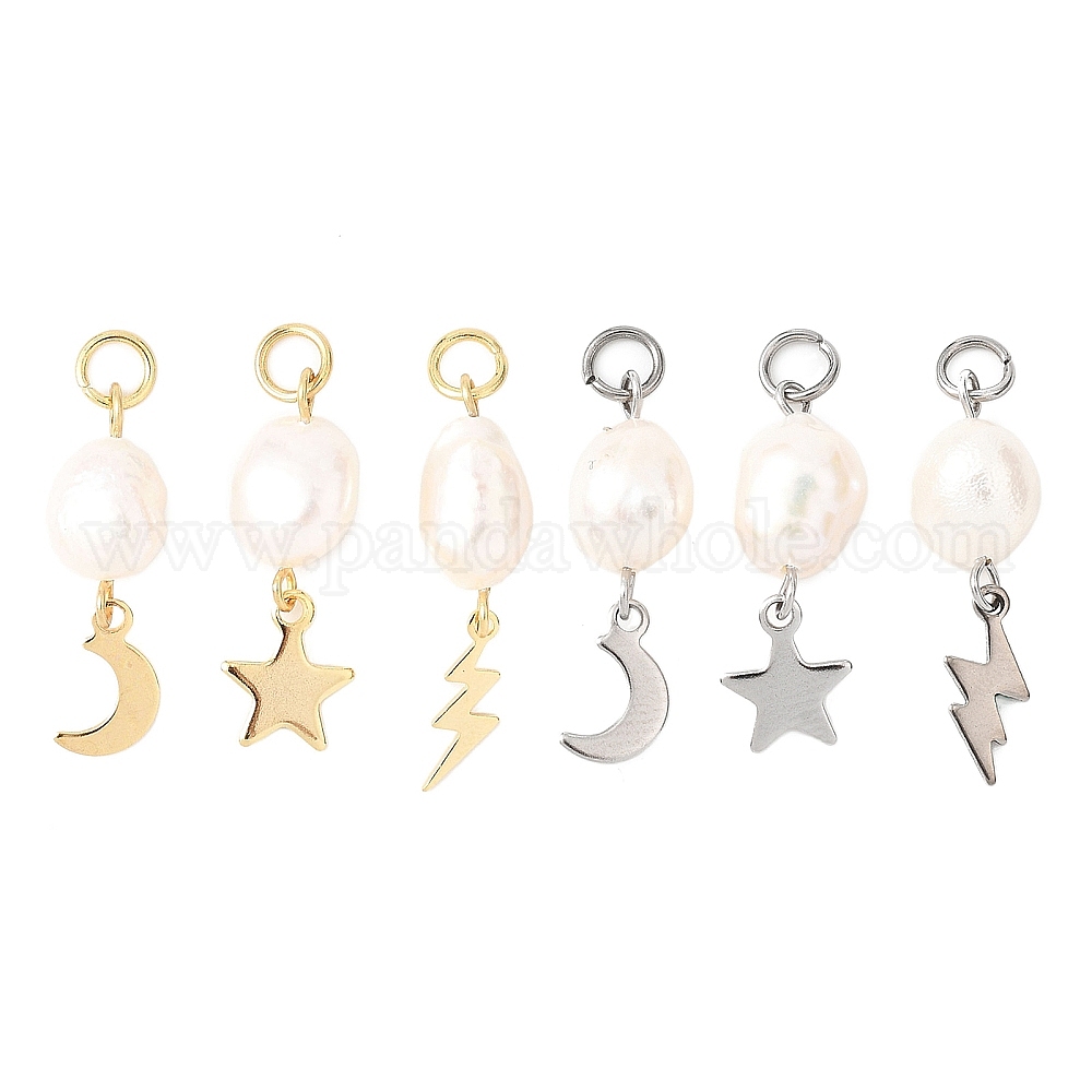 3 шт. 3 стили натуральный культивированный пресноводный жемчуг рис с 304 подвесками из нержавеющей стали в виде луны, звезд и молний, разнообразные, цветочный белый
