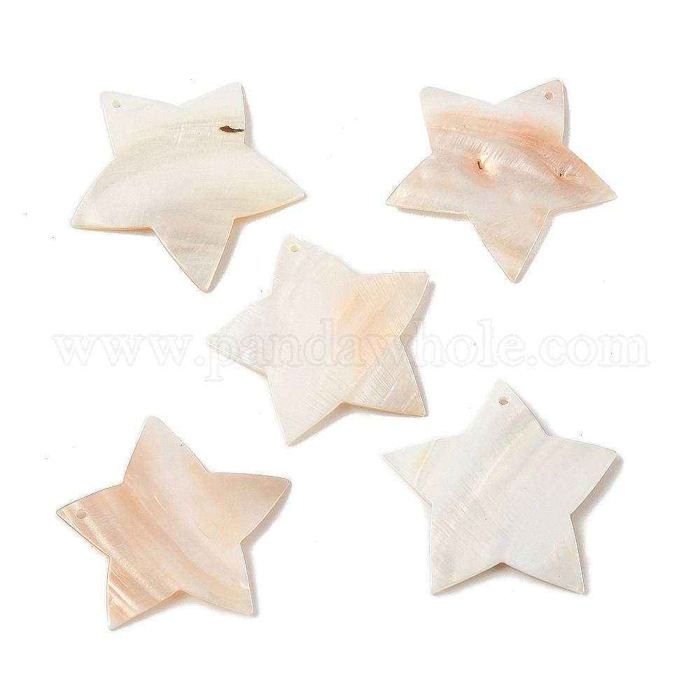 • Античный Белый Природные подвески оболочки пресноводных, звезды прелести, старинный белый, 39.5~40x41~41.5x1.5~2 мм, отверстие : 1.6 мм