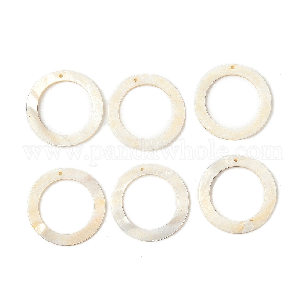 • Античный Белый Природные подвески оболочки пресноводных, кольцо прелести, старинный белый, 45x3.5 мм, отверстие : 1.8 мм
