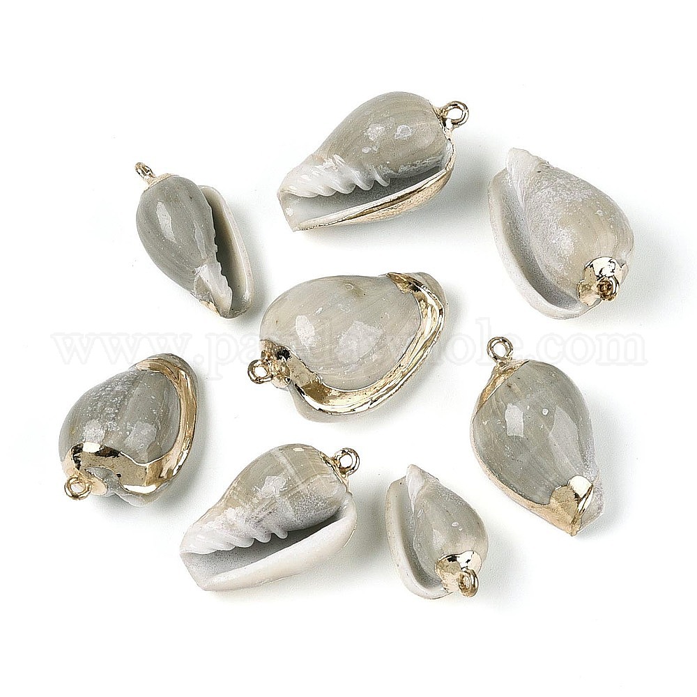 Подвески из натуральных ракушек с гальваническим покрытием, подвески в форме ракушек, с латунной фурнитурой , золотые