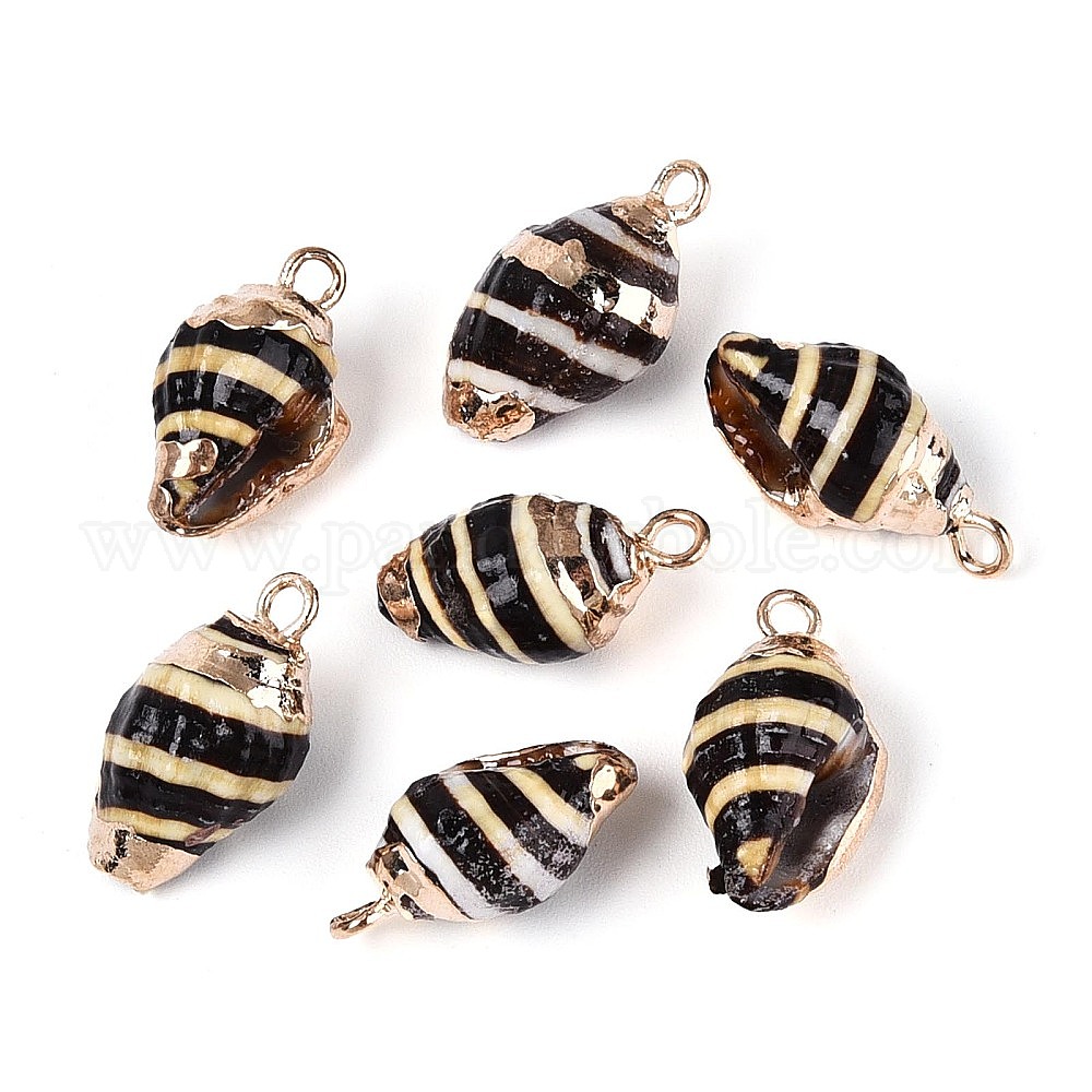 Подвески из натуральных ракушек с гальваническим покрытием, подвески в форме ракушек, с латунной фурнитурой , золотые