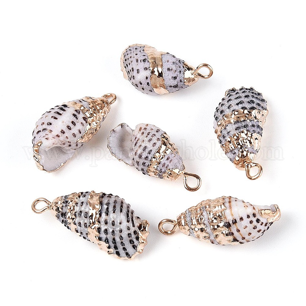 Подвески из натуральных ракушек с гальваническим покрытием, подвески в форме ракушек, с латунной фурнитурой , золотые