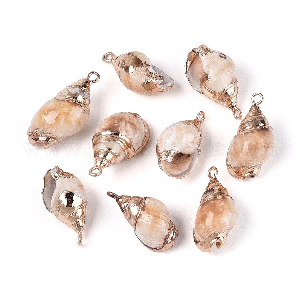 Подвески из натуральных ракушек с гальваническим покрытием, подвески в форме ракушек, с латунной фурнитурой , золотые