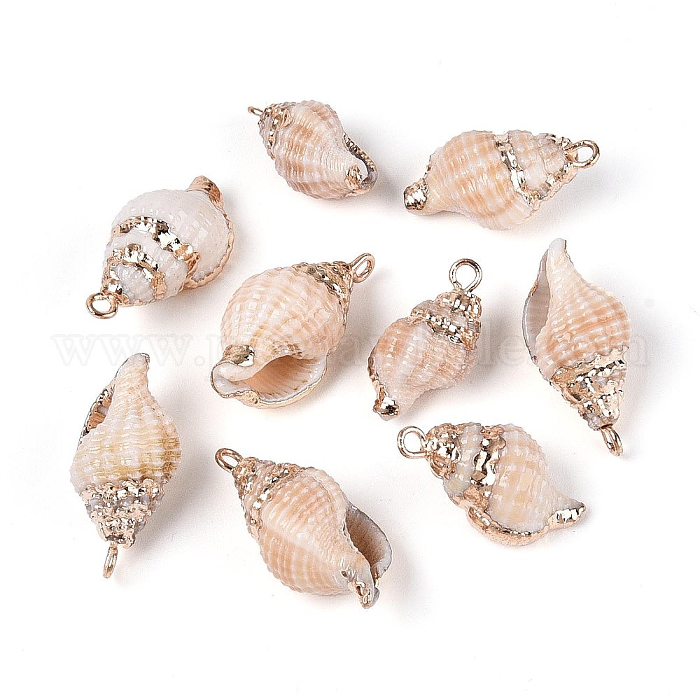 Подвески из натуральных ракушек с гальваническим покрытием, подвески в форме ракушек, с латунной фурнитурой , золотые