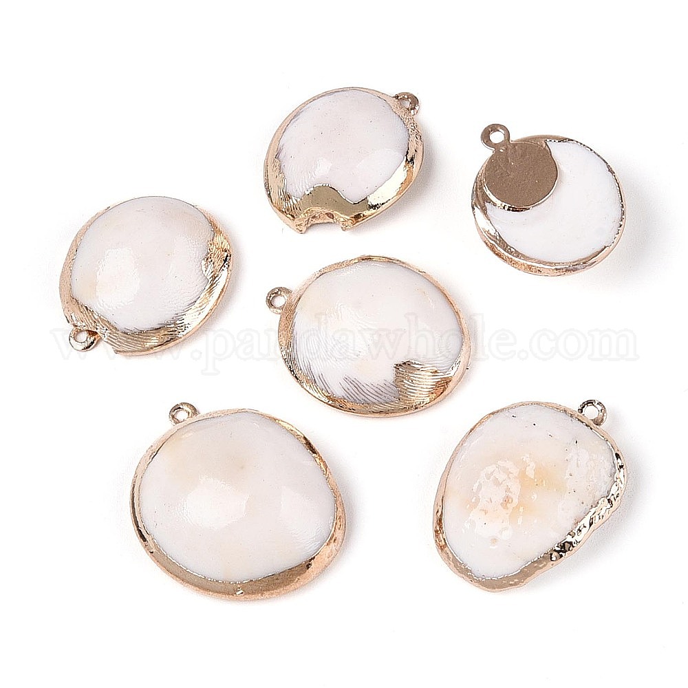 Подвески из натуральных ракушек с гальваническим покрытием, подвески в форме ракушек, с латунной фурнитурой , золотые