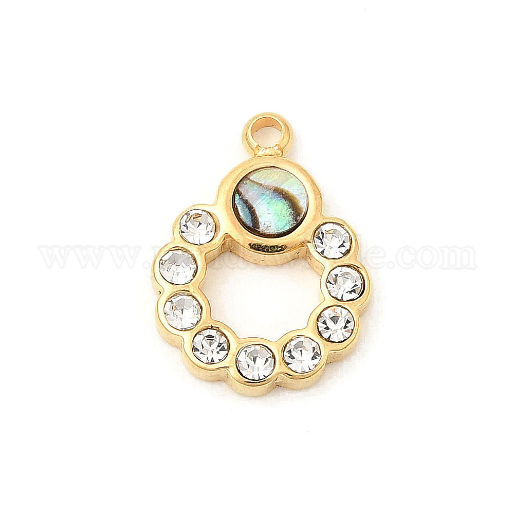 Подвески-кольца из натуральной ракушки пауа, с 304 фурнитурой из хрусталя и страз из нержавеющей стали, ионное покрытие (ip)