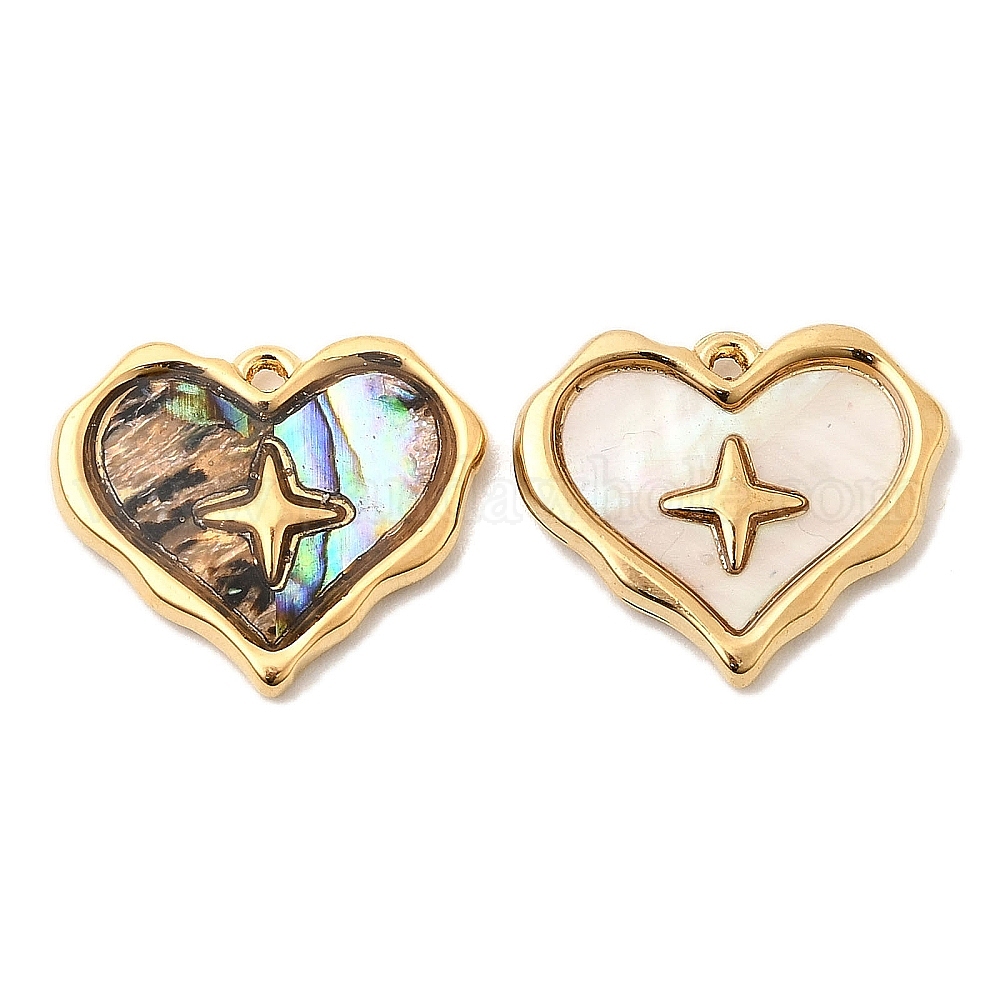 Природные подвески оболочки, подвески в форме сердца с 304 оправами из нержавеющей стали, ионное покрытие (ip), реальный 18 k позолоченный