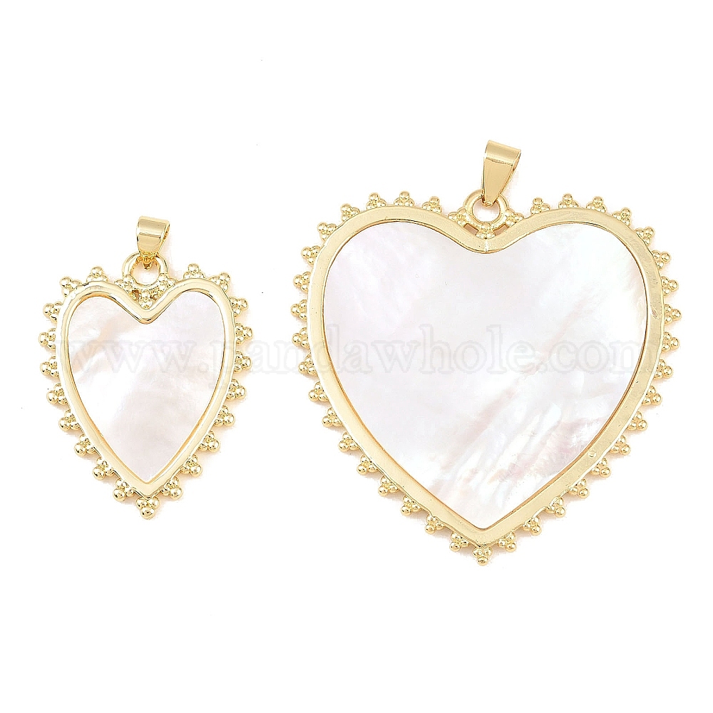 • Настоящее золото 18K Натуральный белый оболочки подвески, подвески в форме сердца с латунной оправой, долговечный, стойки покрытие, без свинца и без кадмия, цвет морской раковины, реальный 18 k позолоченный, 45x45x2 мм, отверстие : 5x3.5 мм