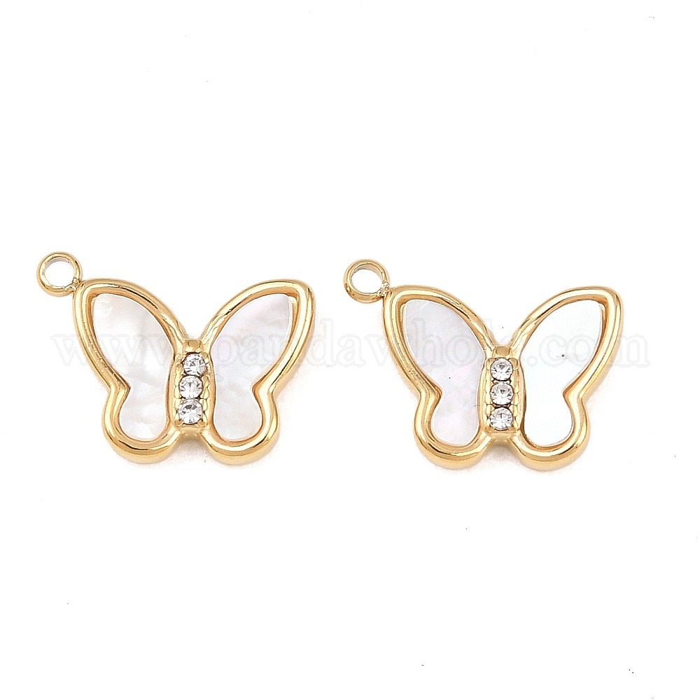 Подвески в виде бабочек из натуральных ракушек, с 304 оправами из нержавеющей стали с кристаллами, цвет морской раковины