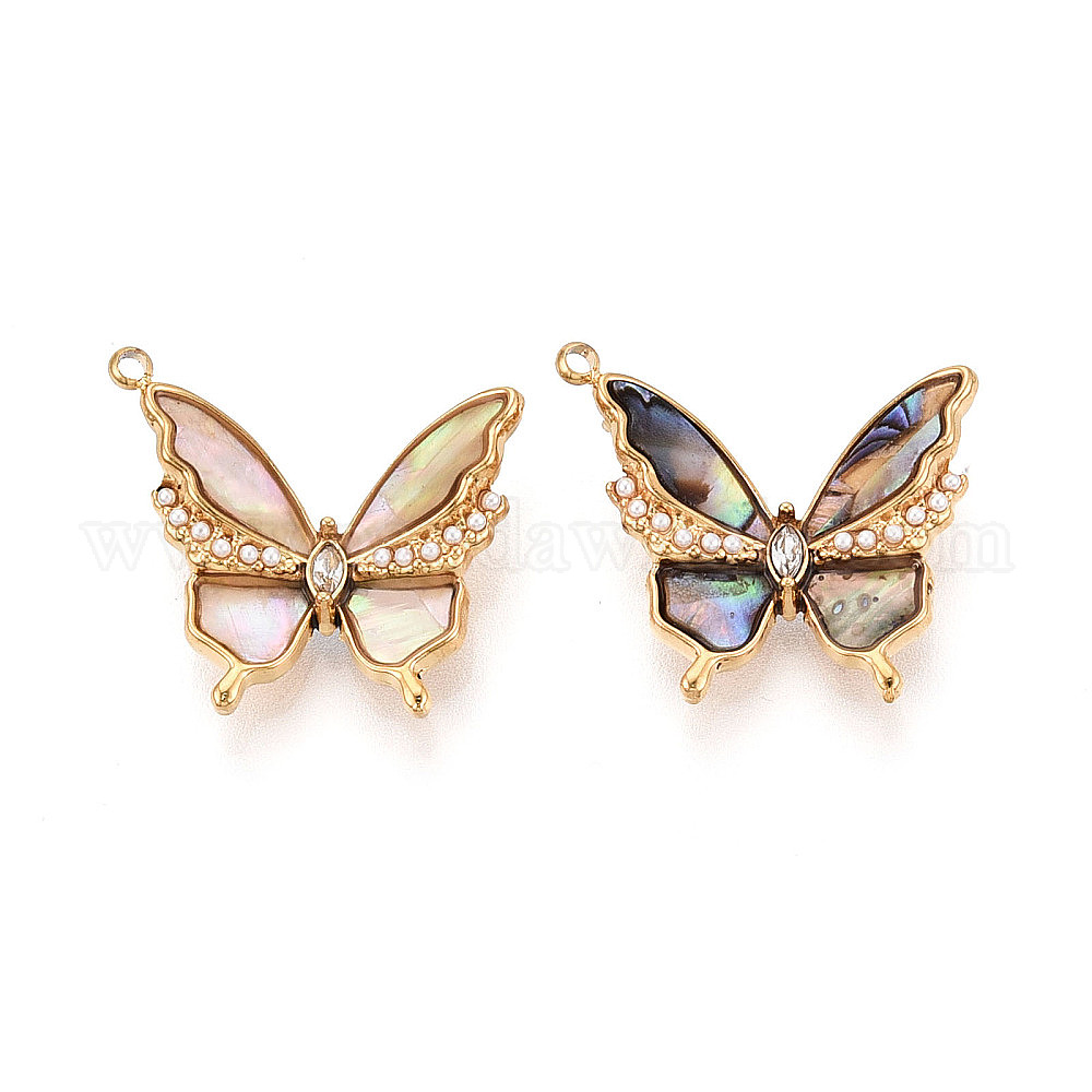304 Подвески в виде бабочек из нержавеющей стали, ракушек, стразов и искусственного жемчуга ABS, золотые