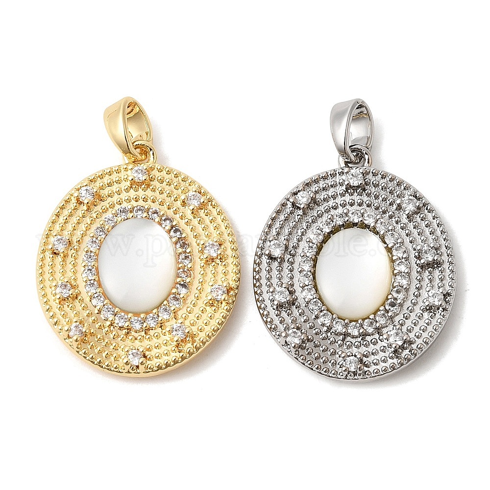 • Настоящее золото 18K Натуральный белый оболочки подвески, Овальные подвески с латунными микропаве из прозрачных кубических цирконий., реальный 18 k позолоченный, 22.5~23x18.5x3.5~4 мм, отверстие : 1.4 мм