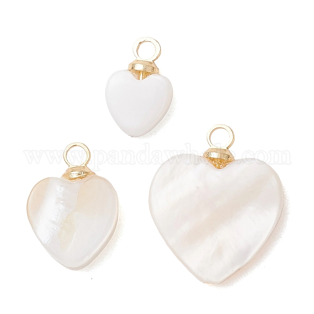 3шт. 3 размеры подвески в виде сердца из натуральных пресноводных ракушек, с латунной поручительств, цвет морской раковины (03AD8X)
