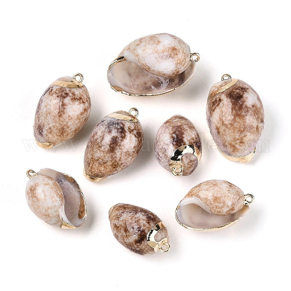 • Светло-коричневый Гальванические подвески из натуральных ракушек, Подвески в виде раковин с петлями из железа золотистого оттенка., загар, 26~35x15.5~21.5x13~18 мм, отверстие : 1.6~1.7 мм