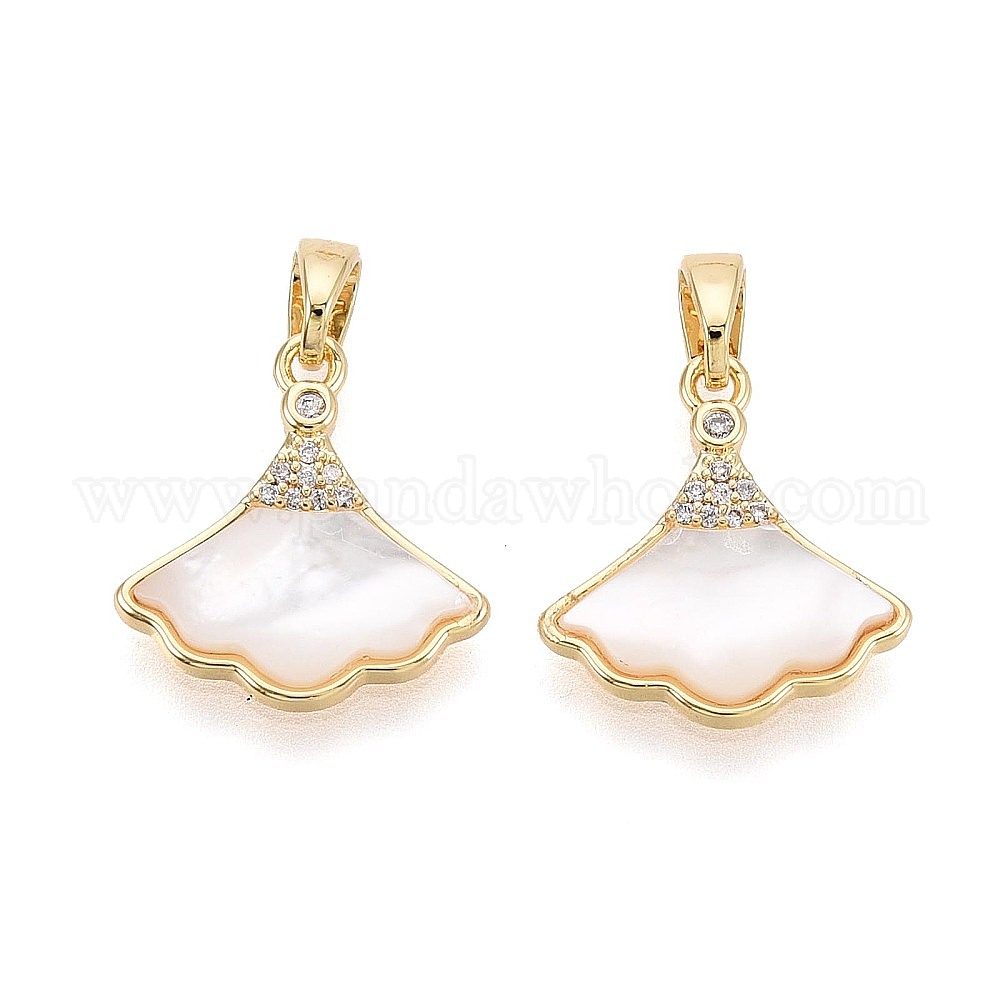 Натуральный белый оболочки подвески, подвески в виде листьев из латуни с микропаве из прозрачного кубического циркония