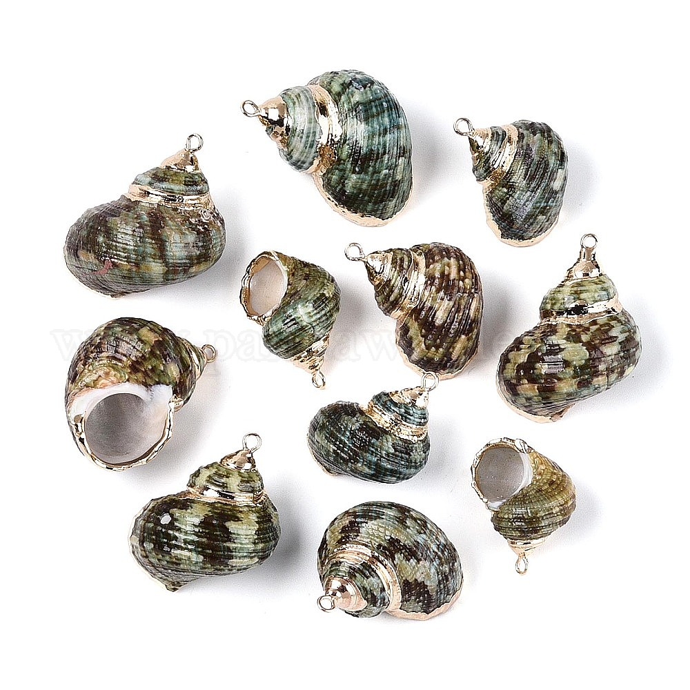 Подвески из натуральных морских ракушек, покрытые гальваническим способом, подвески в форме ракушек, с медными петлями, золотые (03ATT5)