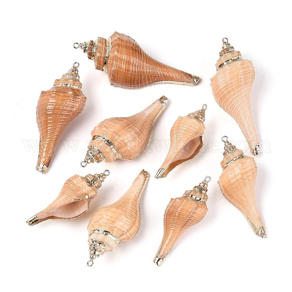 Подвески из натуральной раковины морского моллюска, покрытые гальваническим покрытием., подвески в форме ракушек, с медными петлями, золотые