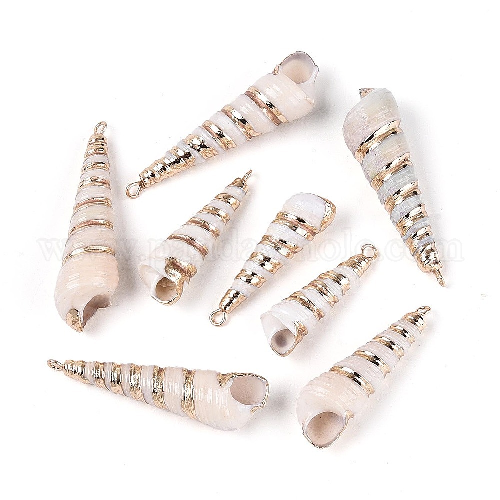 • Морская Ракушка Гальванические подвески из натуральной спирали в ракушке, подвески в форме ракушек, с медными петлями, золотые, цвет морской раковины, 31~48x9~13x9~13 мм, отверстие : 1.8~2 мм