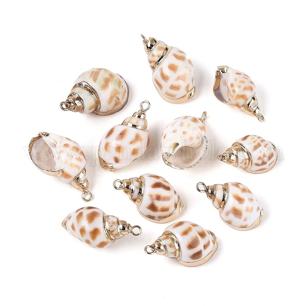 Подвески из натуральных морских ракушек, покрытые гальваническим способом, подвески в форме ракушек, с медными петлями, золотые