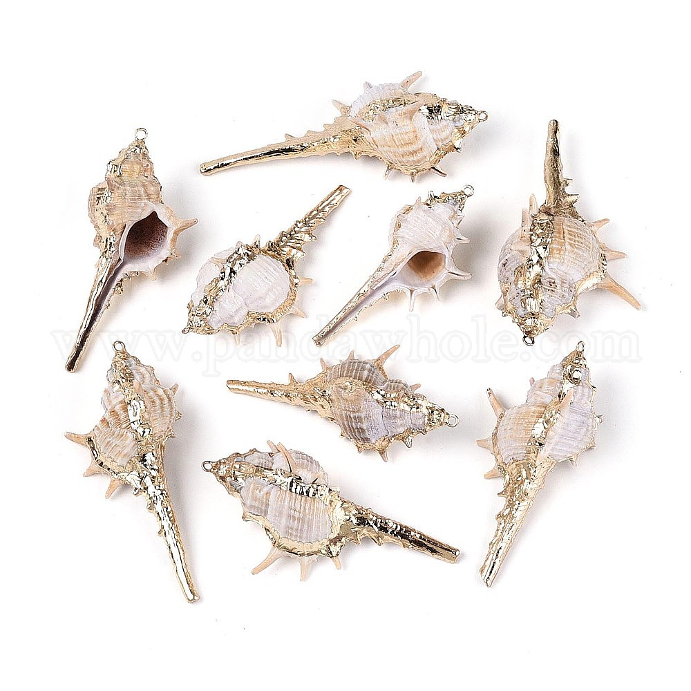 Подвески из натуральных морских ракушек, покрытые методом гальванического покрытия, подвески в форме ракушек, с медными петлями, золотые