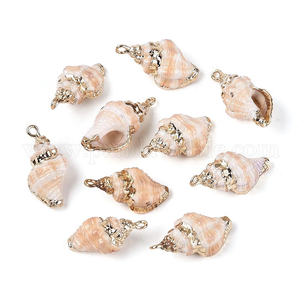 Подвески из натуральных морских ракушек, покрытые гальваническим способом, подвески в форме ракушек, с медными петлями, золотые