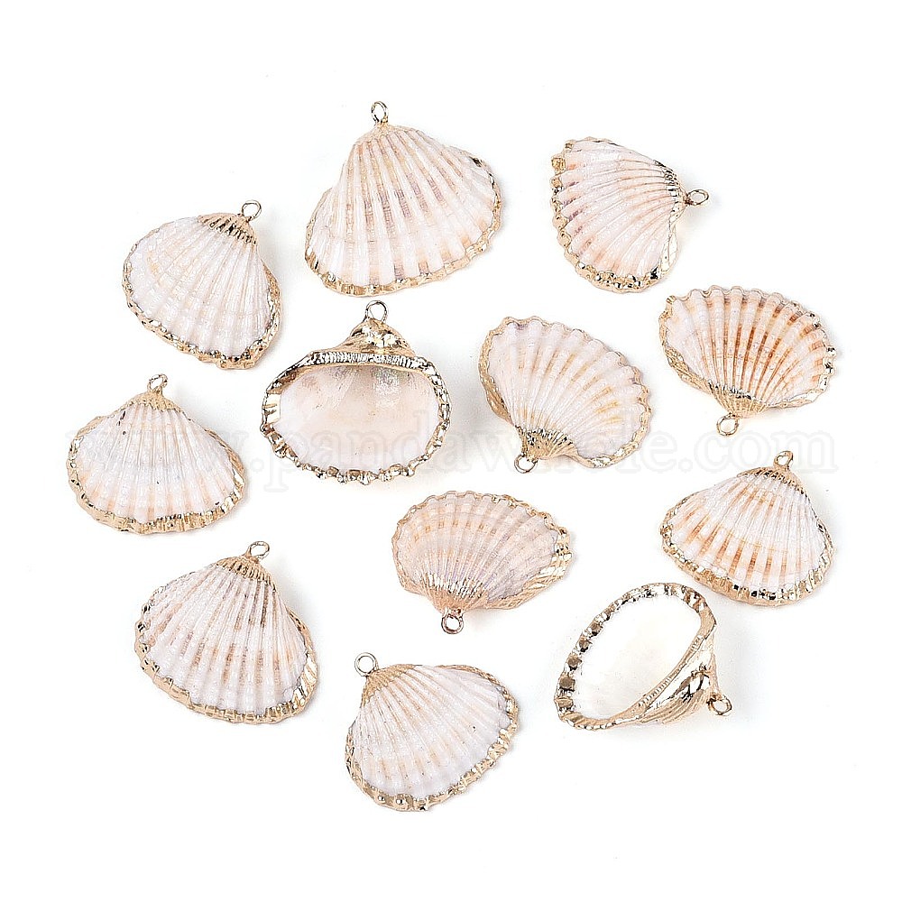 Подвески из натуральных морских ракушек, покрытые гальваническим способом, подвески в форме ракушек, с медными петлями, золотые
