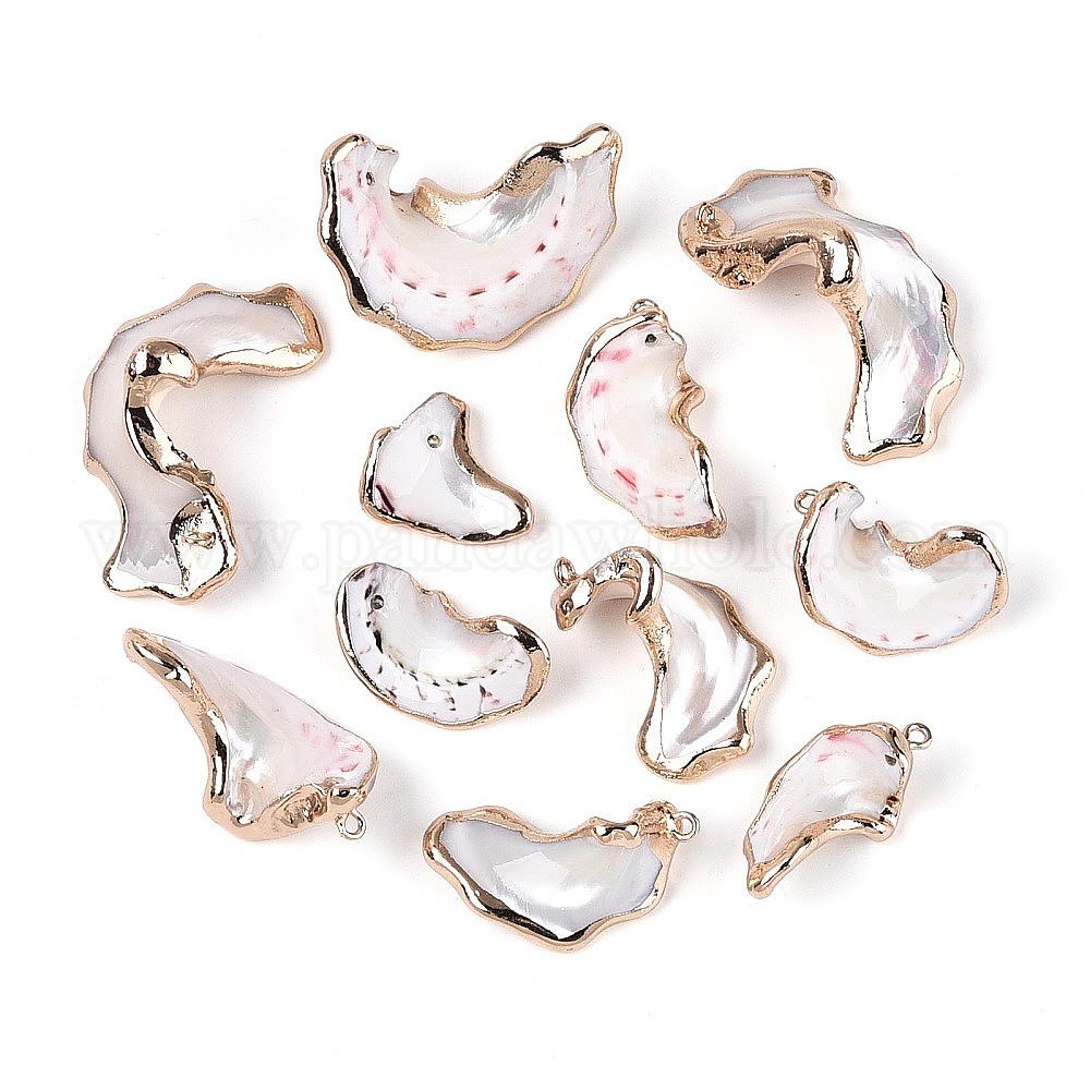 • Морская Ракушка Подвески из натуральных морских ракушек, покрытые гальваническим способом, самородки прелести, с медными петлями, золотые, цвет морской раковины, 21~45x15~27x8.5~20 мм, отверстие : 1.6~1.8 мм
