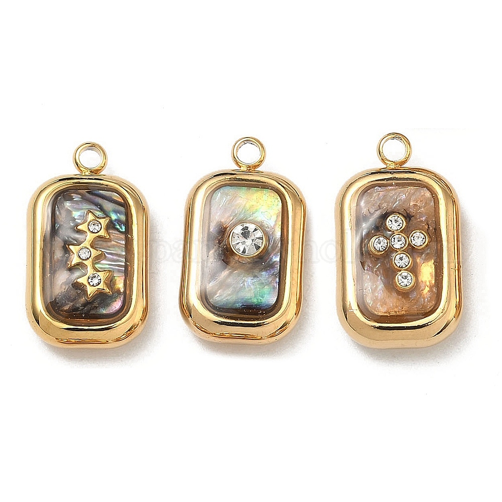Природные пауа оболочки подвески, 304 Прямоугольные подвески из нержавеющей стали с кристаллами и стразами, вакуумное покрытие pvd, реальный 18 k позолоченный