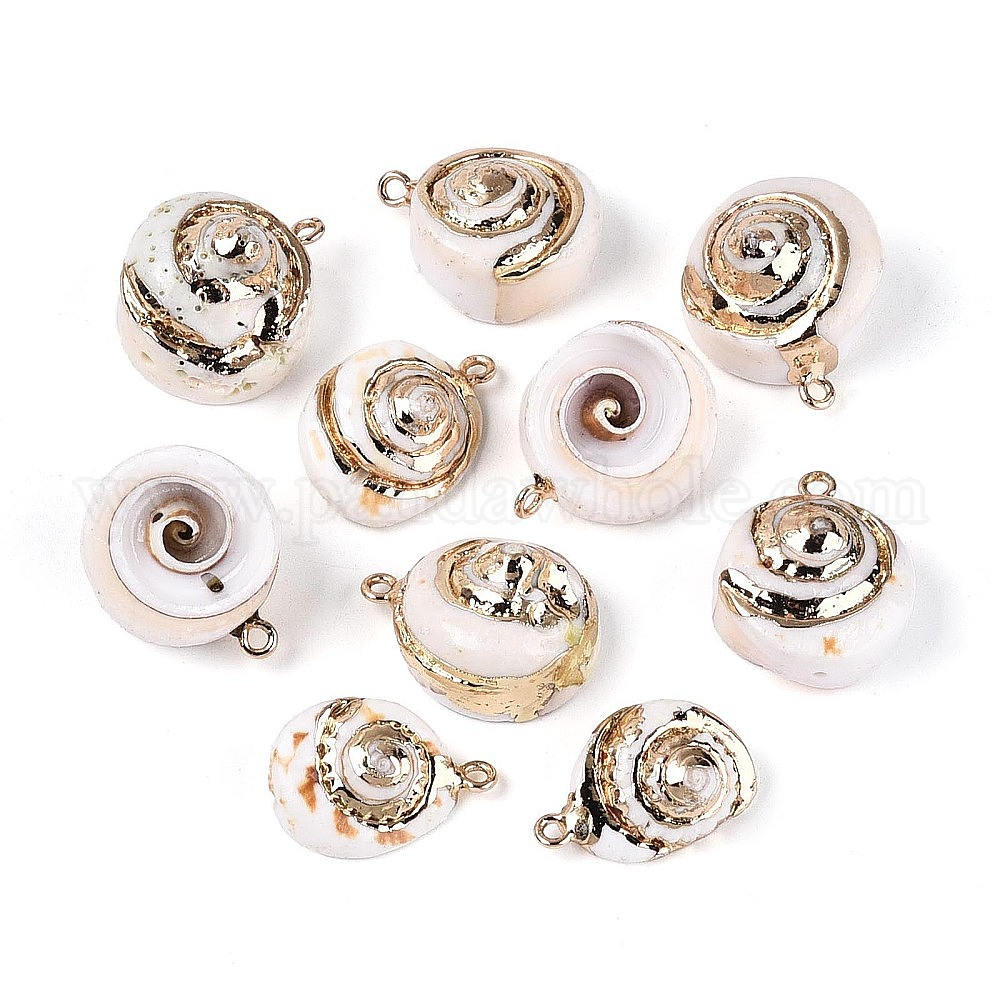 Подвески из натуральных морских ракушек, покрытые гальваническим способом, подвески в форме ракушек, с железными петлями и латунной фурнитурой, золотые