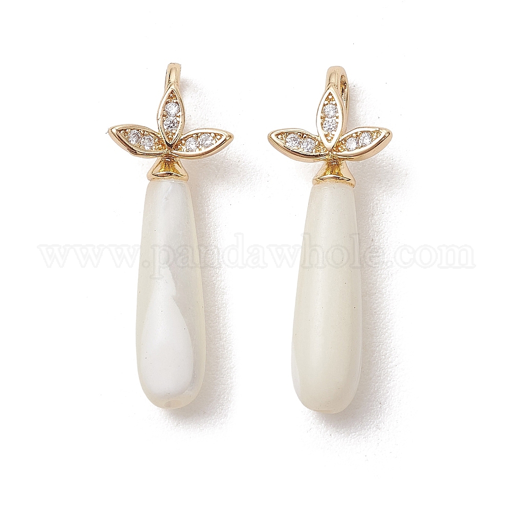 Подвески из латуни с микропаве из кубического циркония и натуральными раковинами трохидии., слезинки, золотые